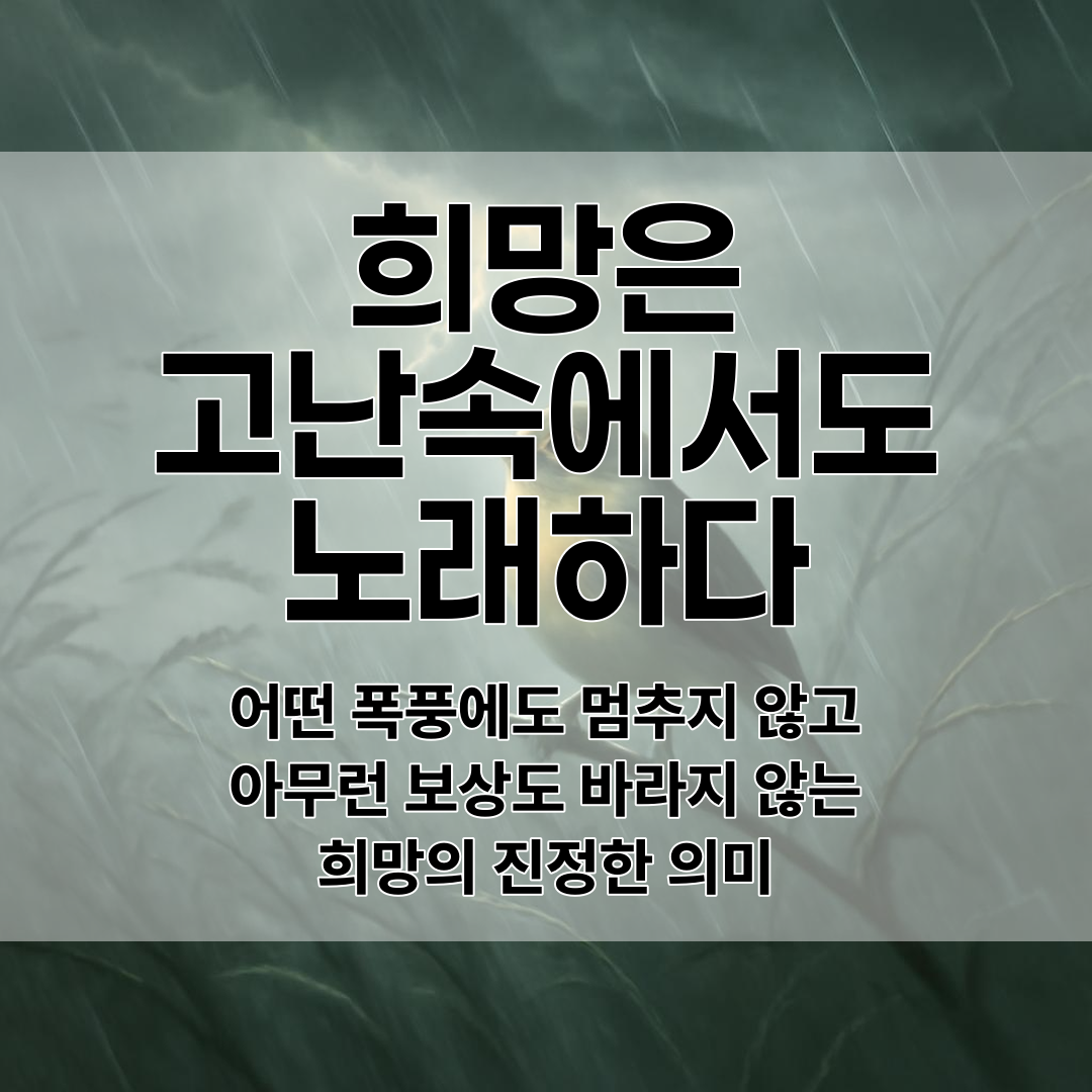 시에서 희망의 새는 고난과 절망, 시련 속에서도 노래를 멈추지 않아요.